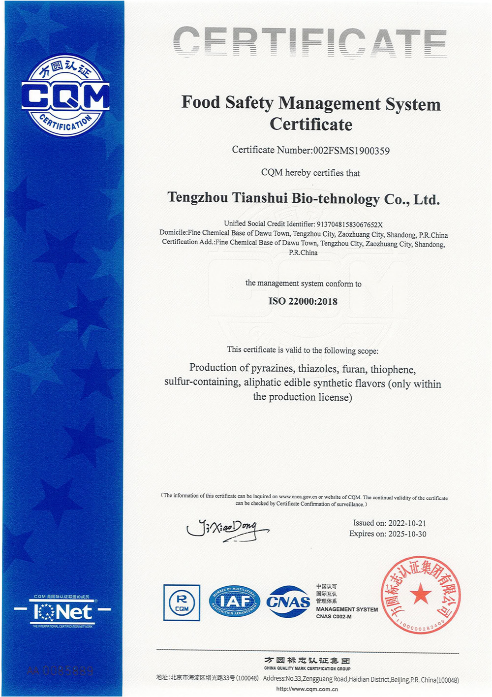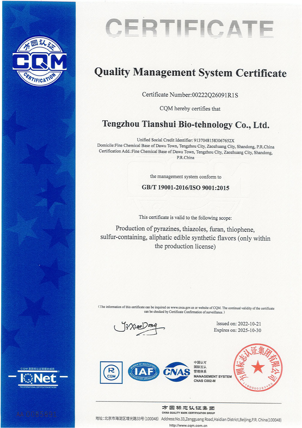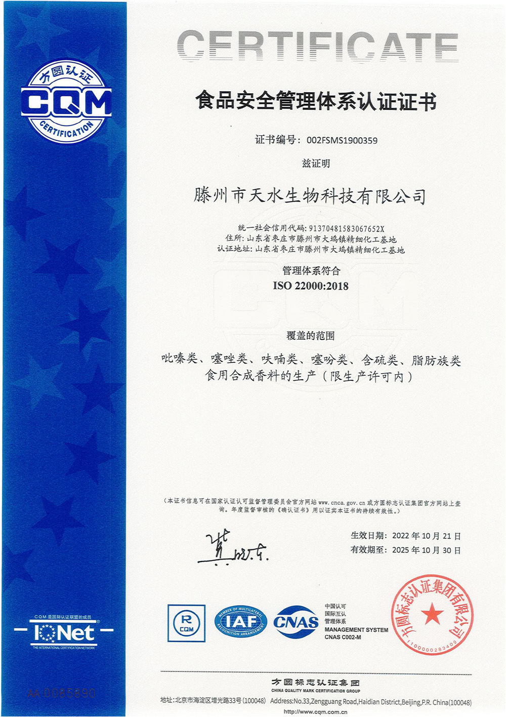 滕州市天水生物科技有限公司成立于2011年9月,是目前國內(nèi)雜環(huán)類合成食品香料、日化香料和醫(yī)藥中間體生產(chǎn)經(jīng)營的綜合性企業(yè)。坐落于山東省滕州市生物醫(yī)藥產(chǎn)業(yè)基地,總投資5000余萬元,占地面積約30000平方米,員工百余人。公司先后被評為高新技術(shù)企業(yè)、專精特新中小企業(yè)、科技型中小企業(yè),建有市級重點(diǎn)實(shí)驗(yàn)室1處,并先后獲得ISO9001質(zhì)量體系認(rèn)證、ISO22000食品安全體系認(rèn)證、kosher認(rèn)證和Halal認(rèn)證。是香精香料及食品配料協(xié)會會員單位及滕州市中小企業(yè)協(xié)會理事單位。